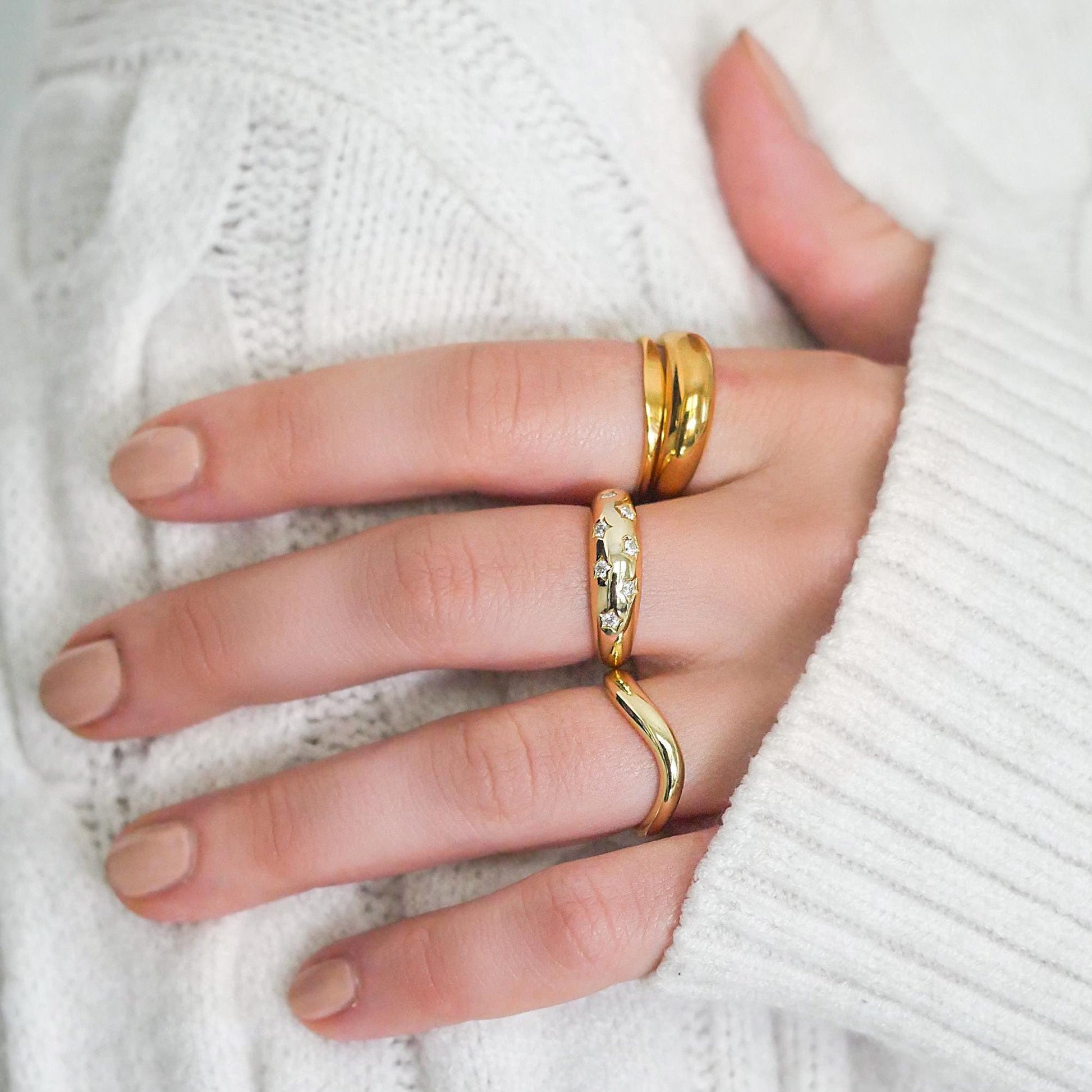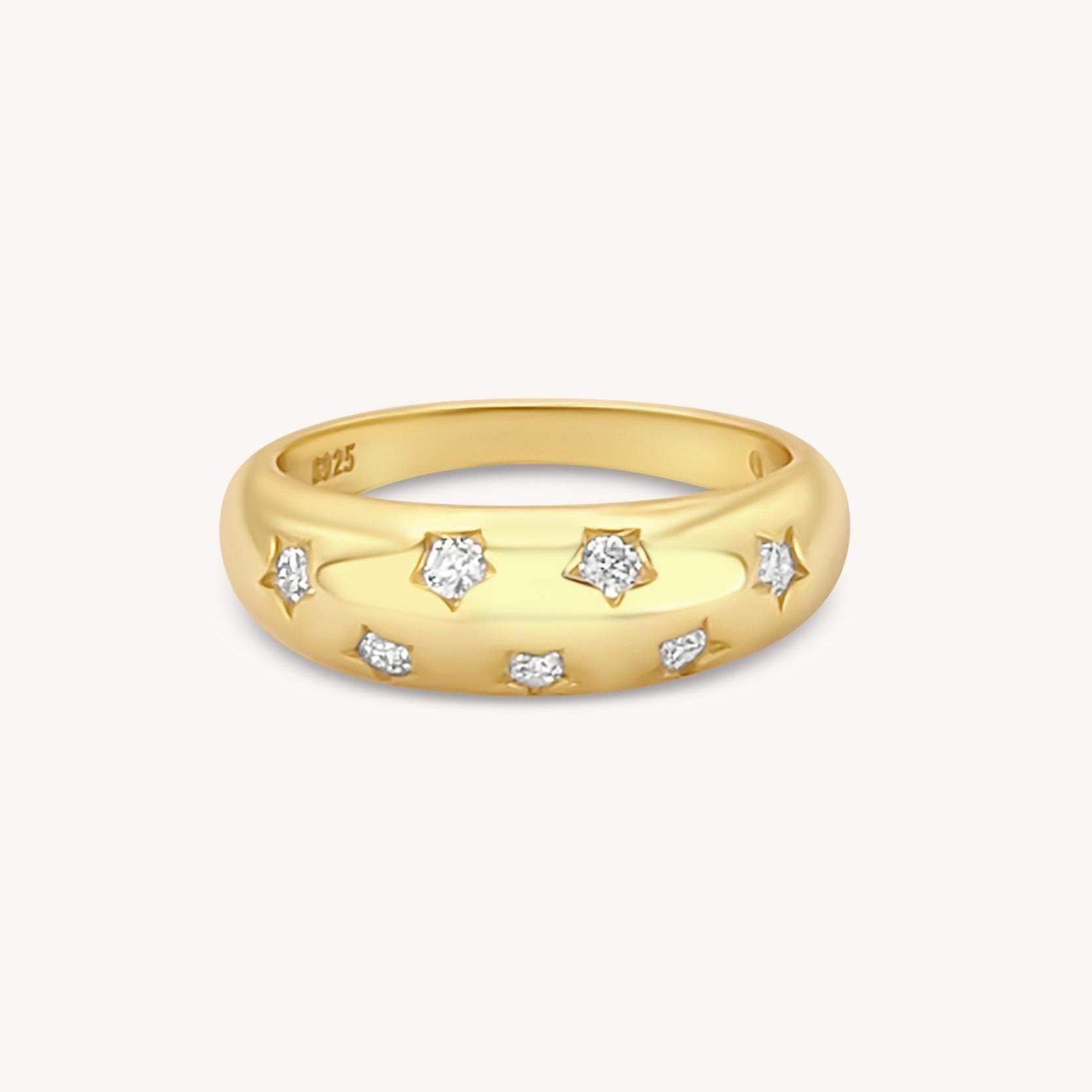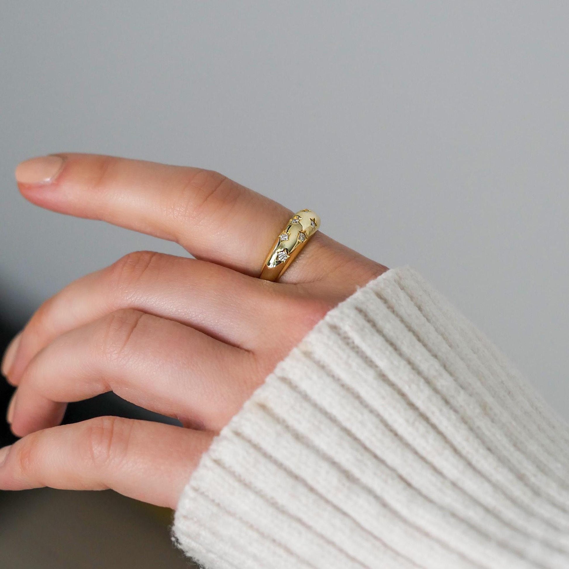 Moissanite Star Statement Ring - 14k Gold, Sterling Silver