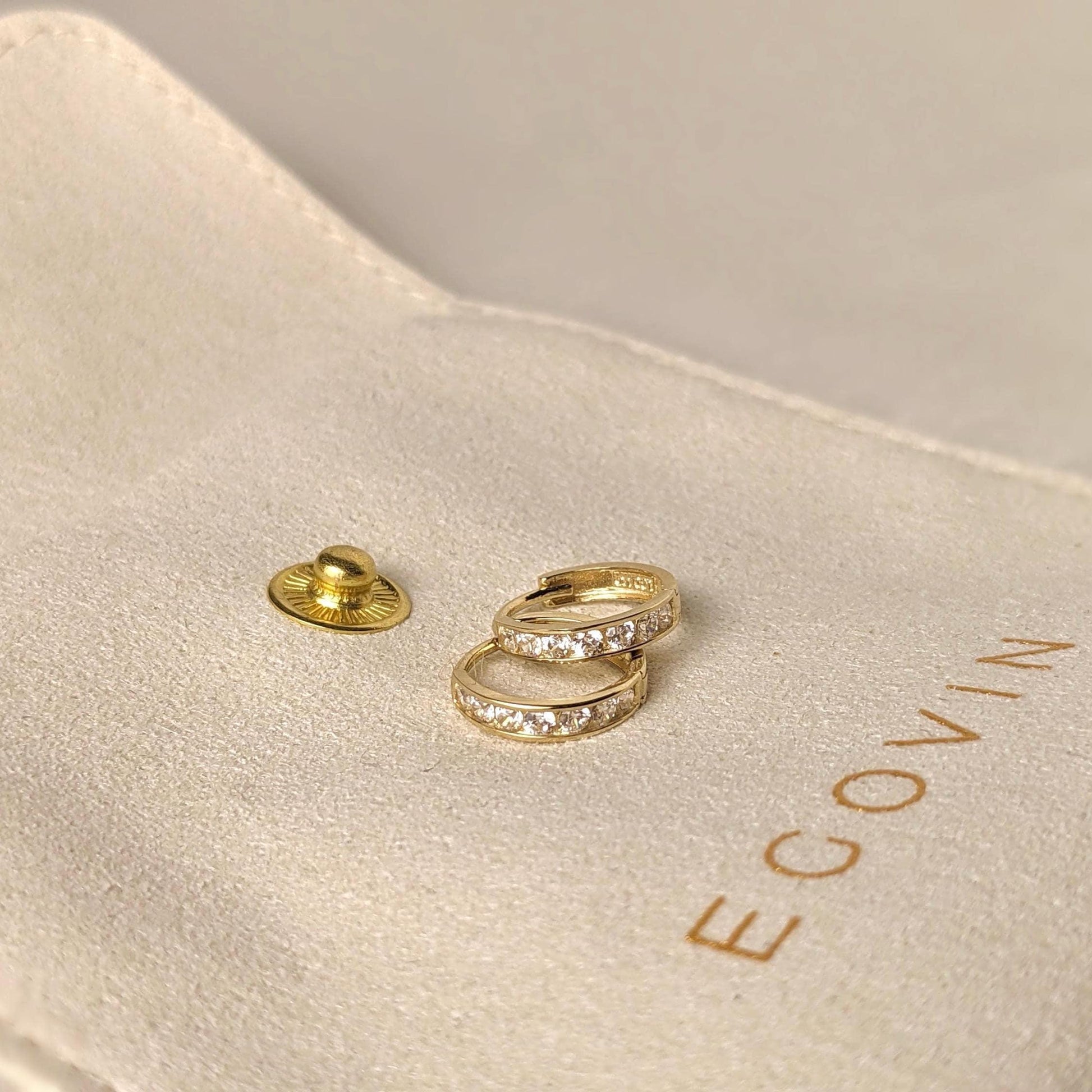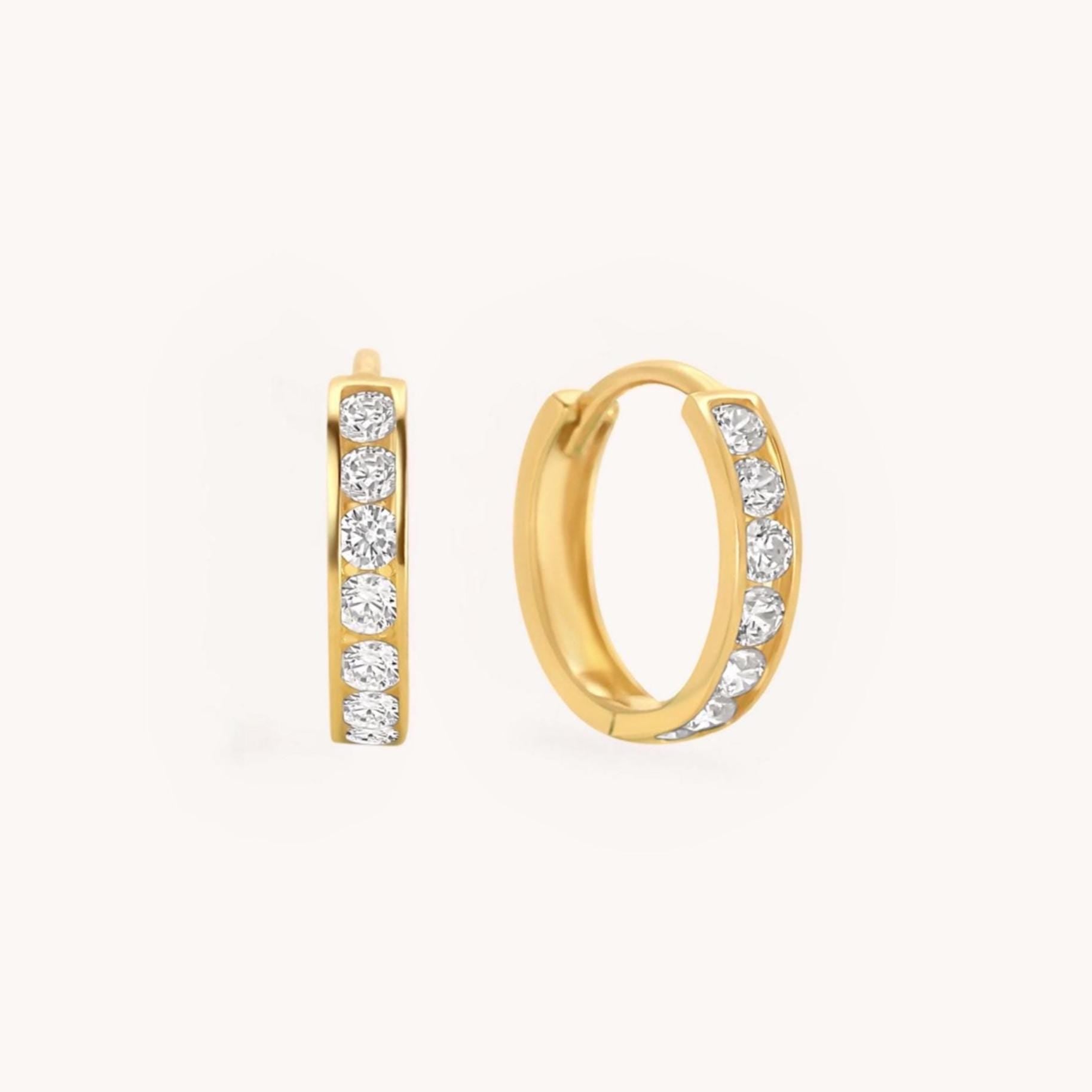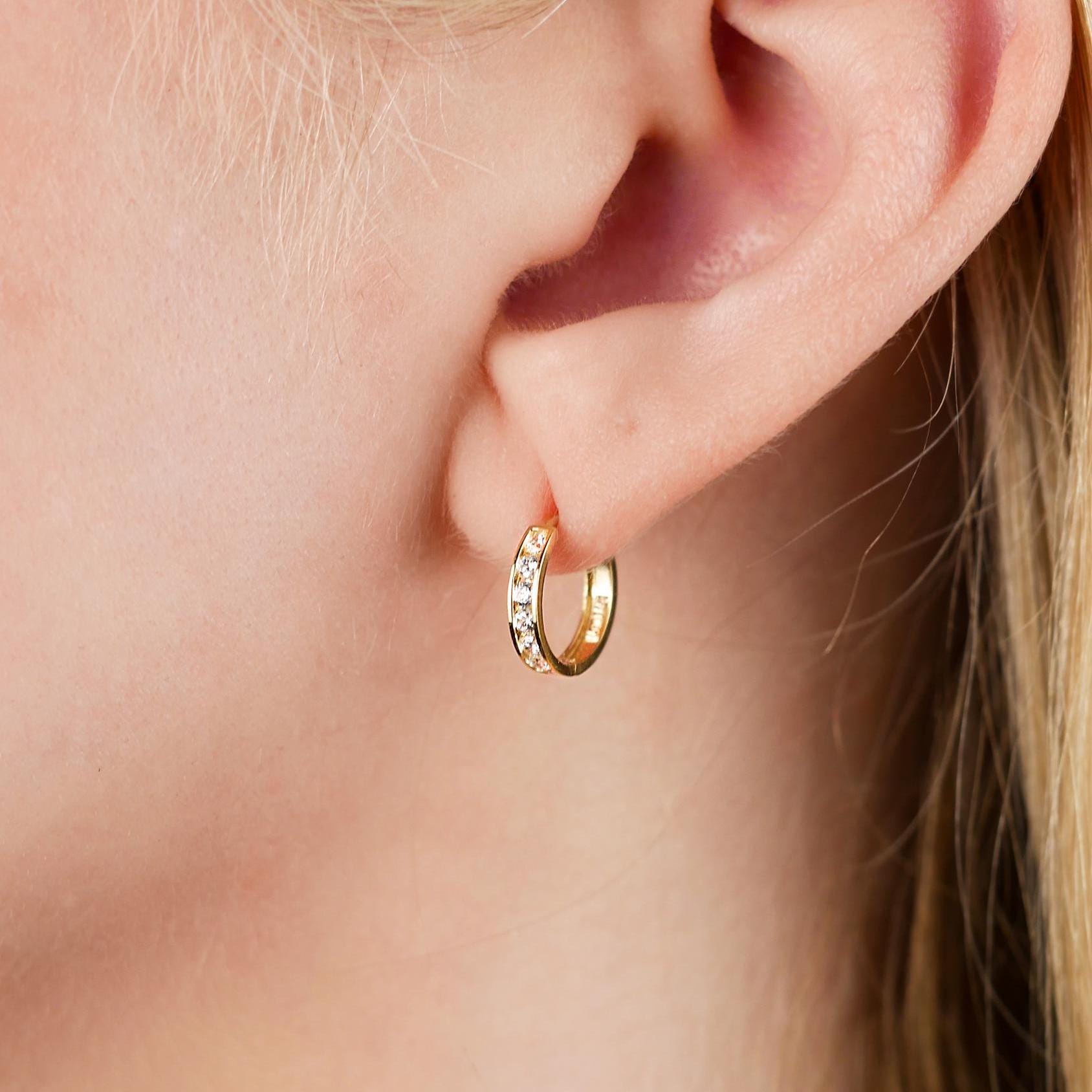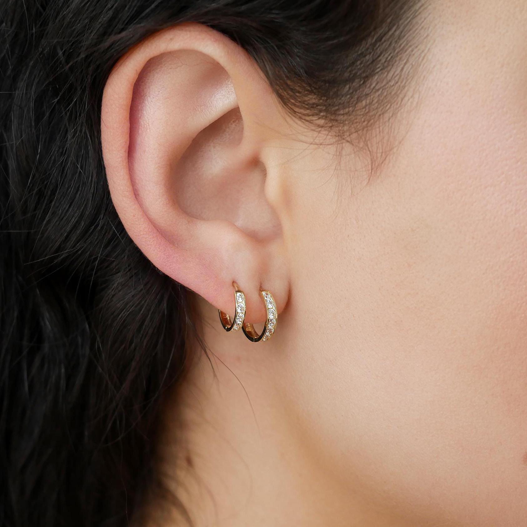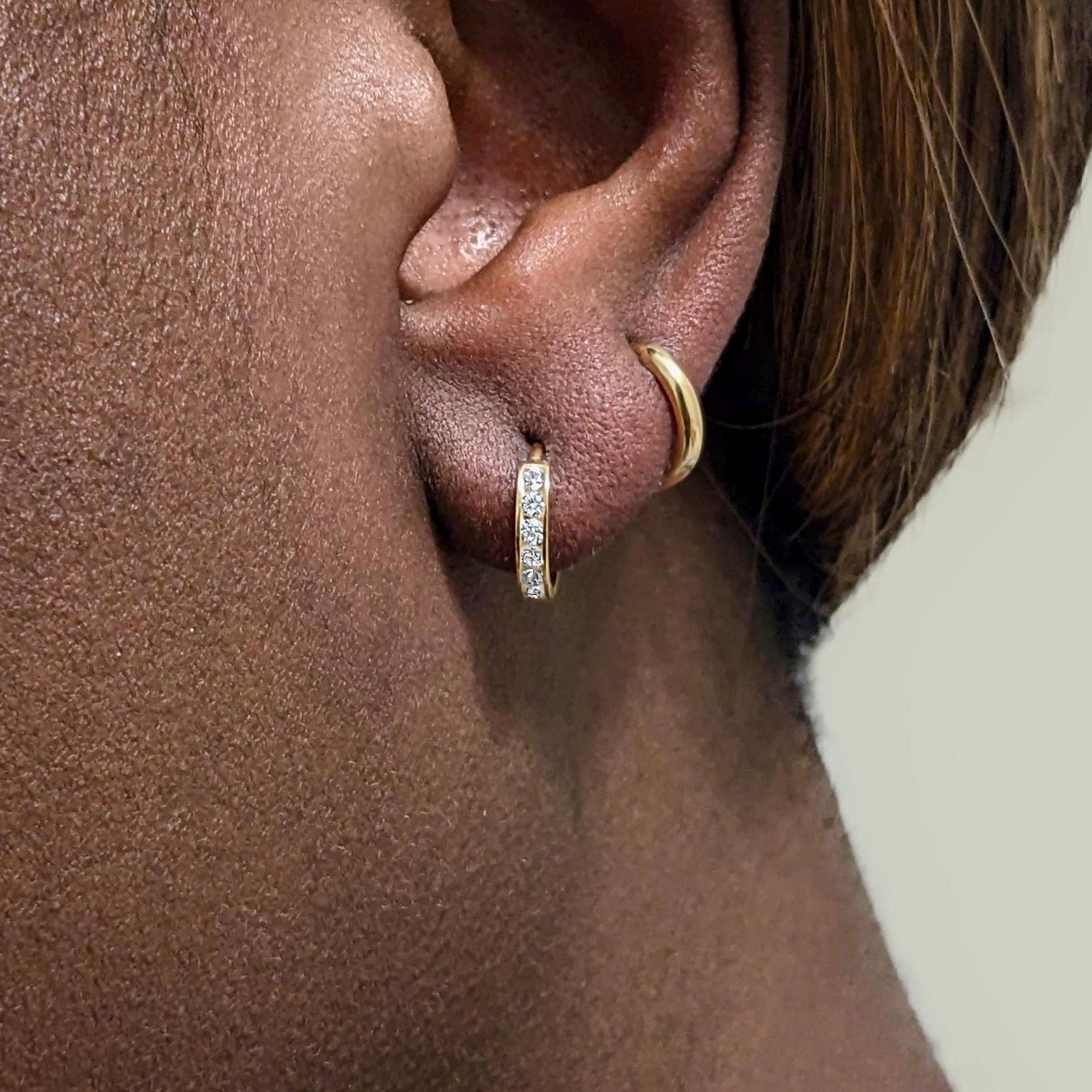 Everyday Lightweight Hoop Diamond Huggies - 14K Solid Gold