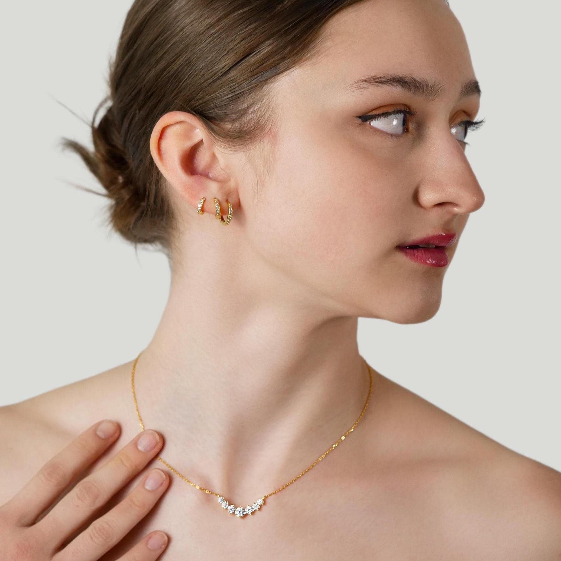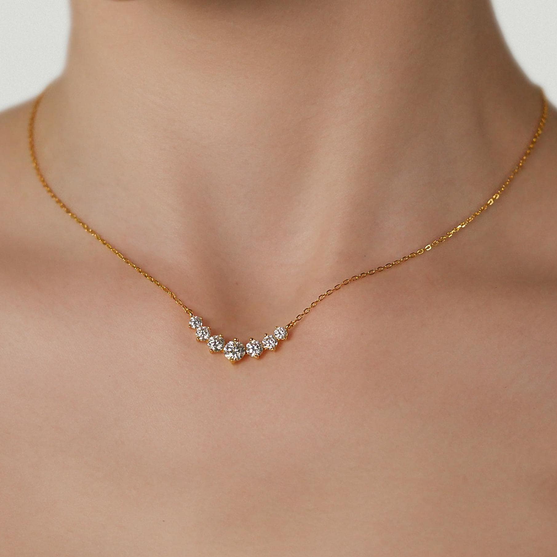 A delicate cluster necklace with a sparkling solitaire moissanite, set in rich 18k gold vermeil. Simple, elegant, and easy to wear, this minimalist necklace adds just the right touch of shine. A beautiful gift for her or a timeless piece for your own collection!