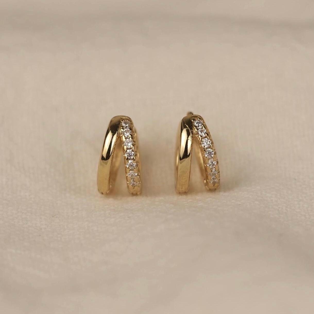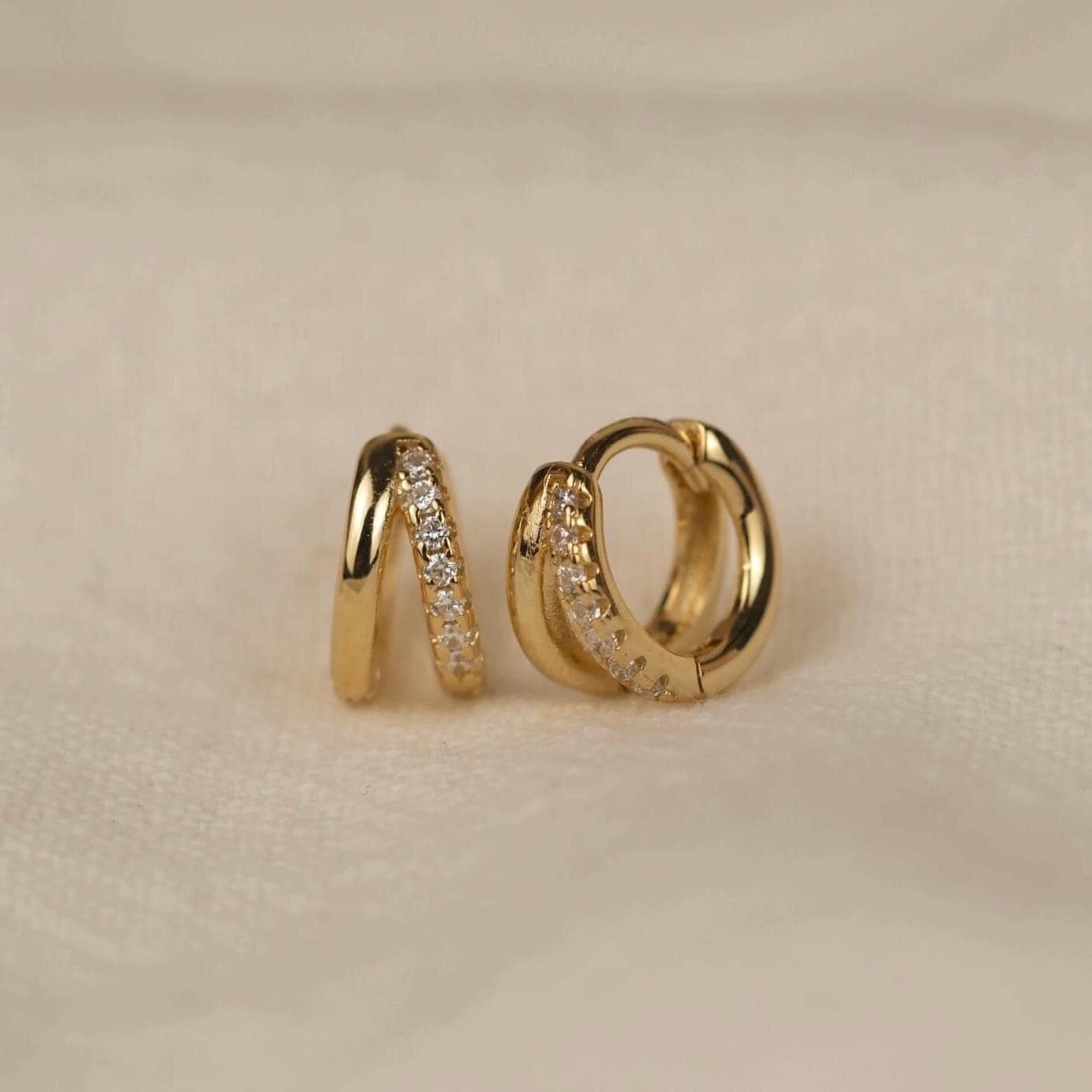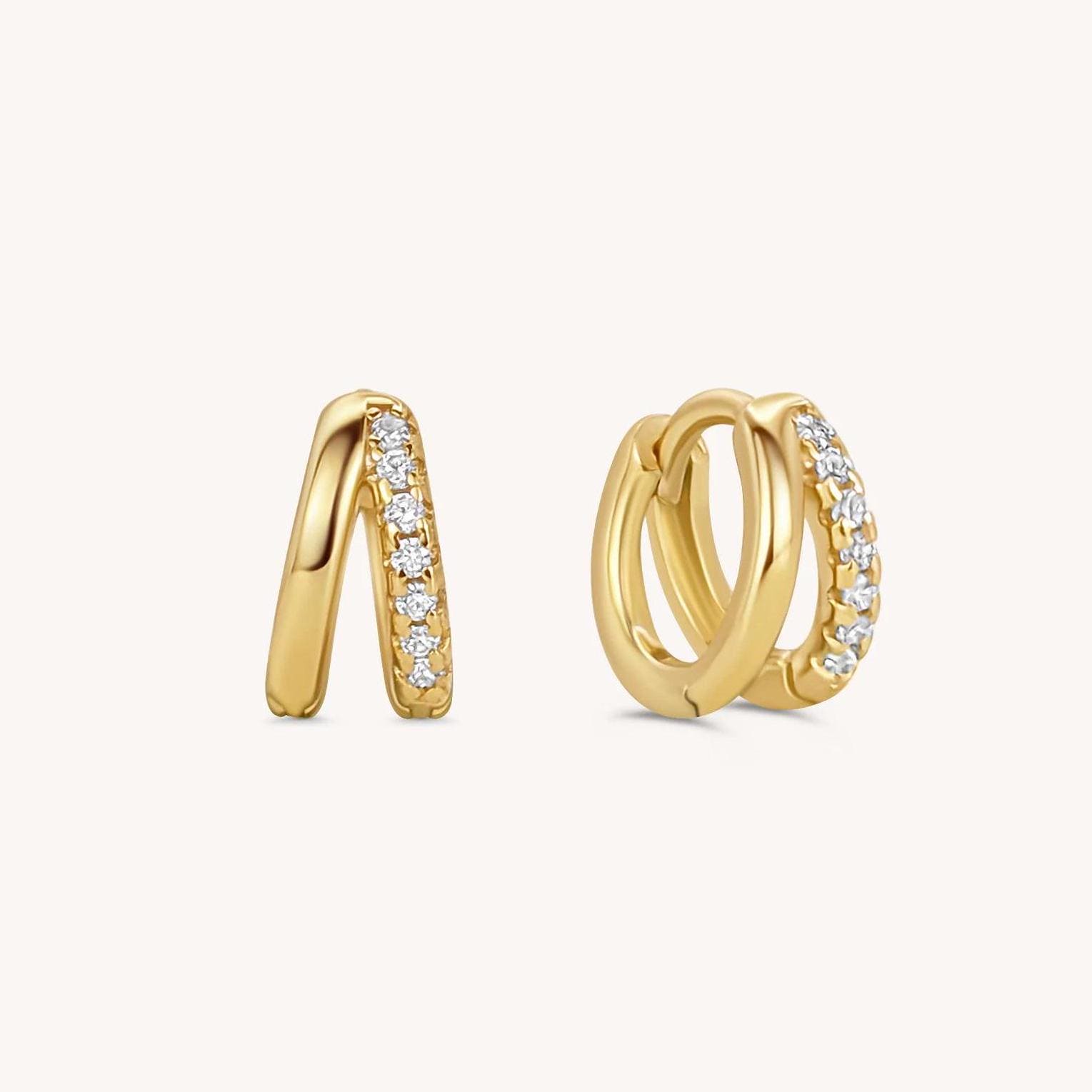 Double Hoop Diamond Huggie Earrings - 18k Gold Vermeil