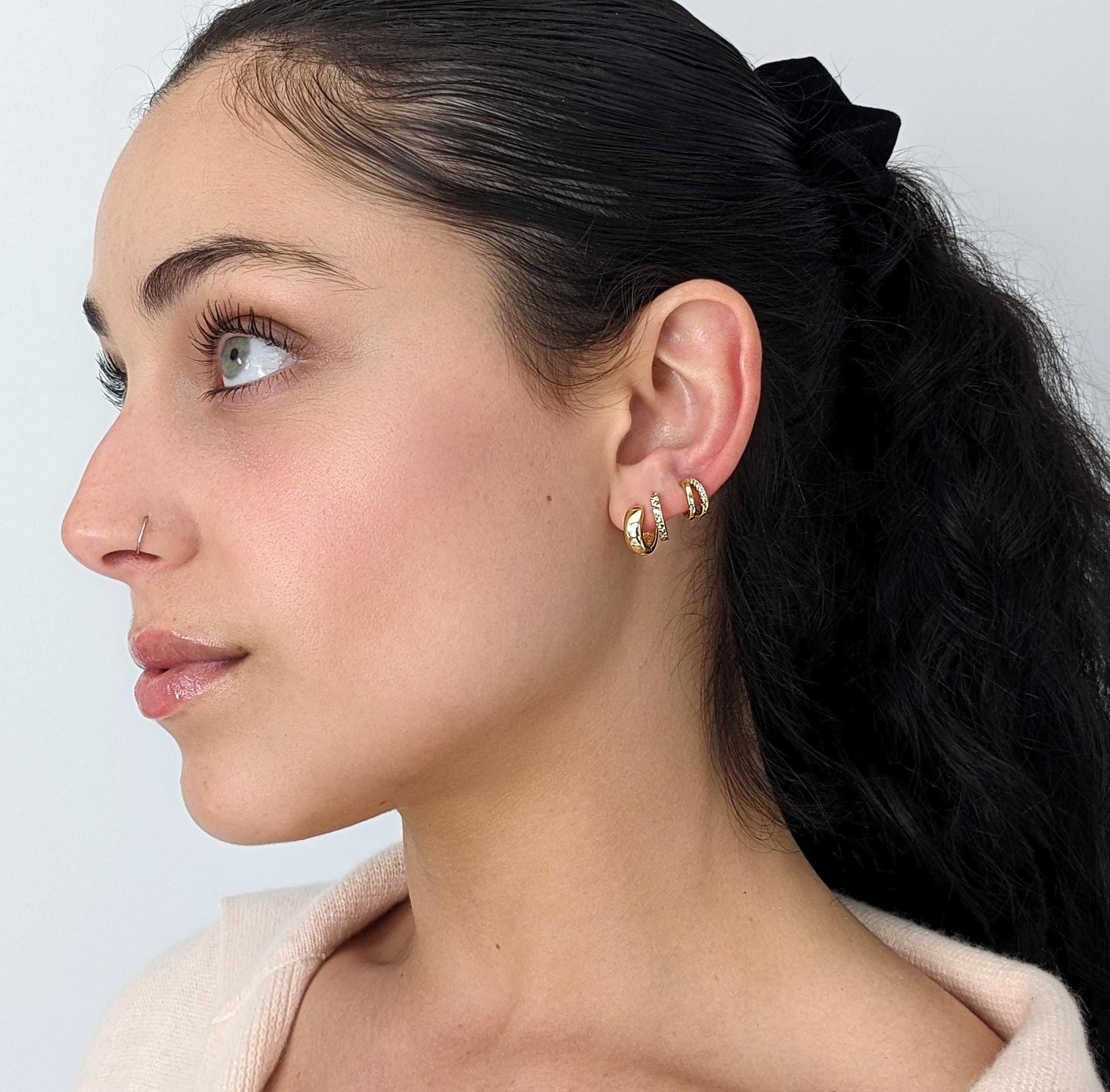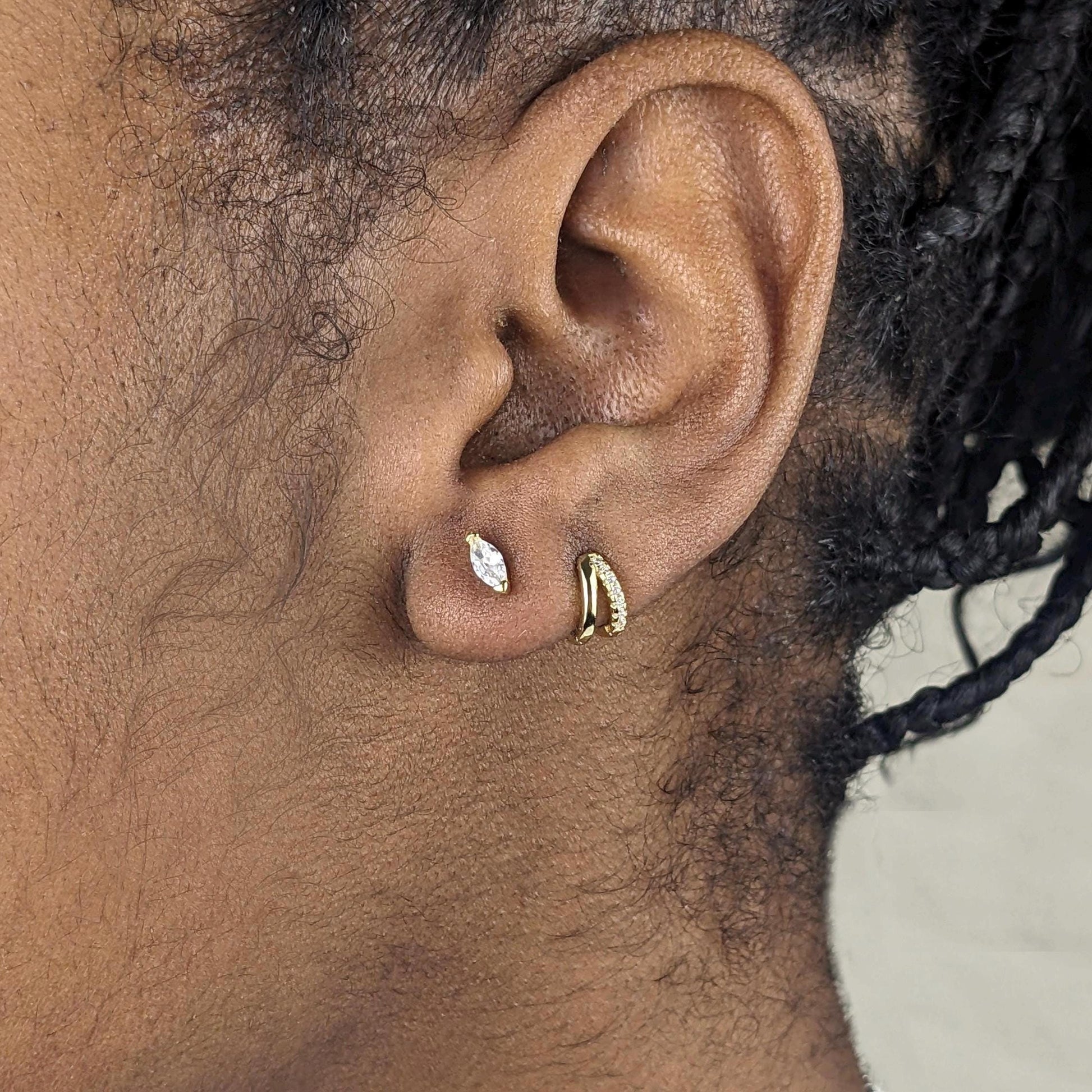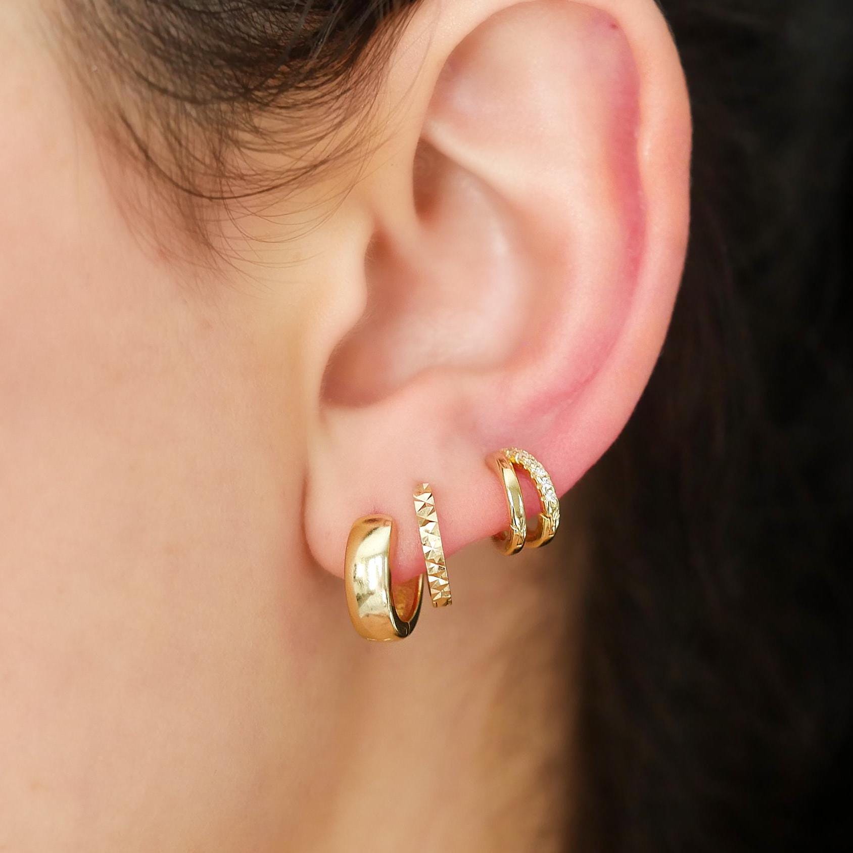 Double Hoop Diamond Huggie Earrings - 18k Gold Vermeil