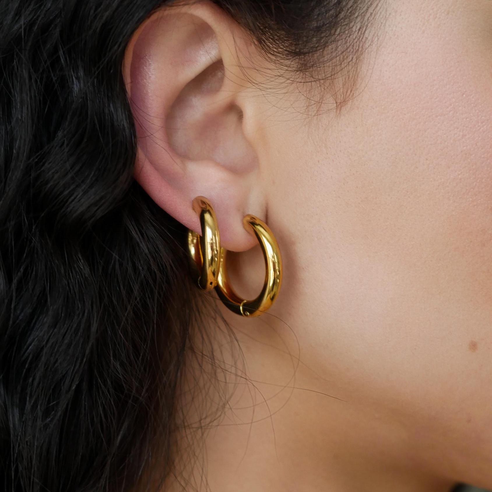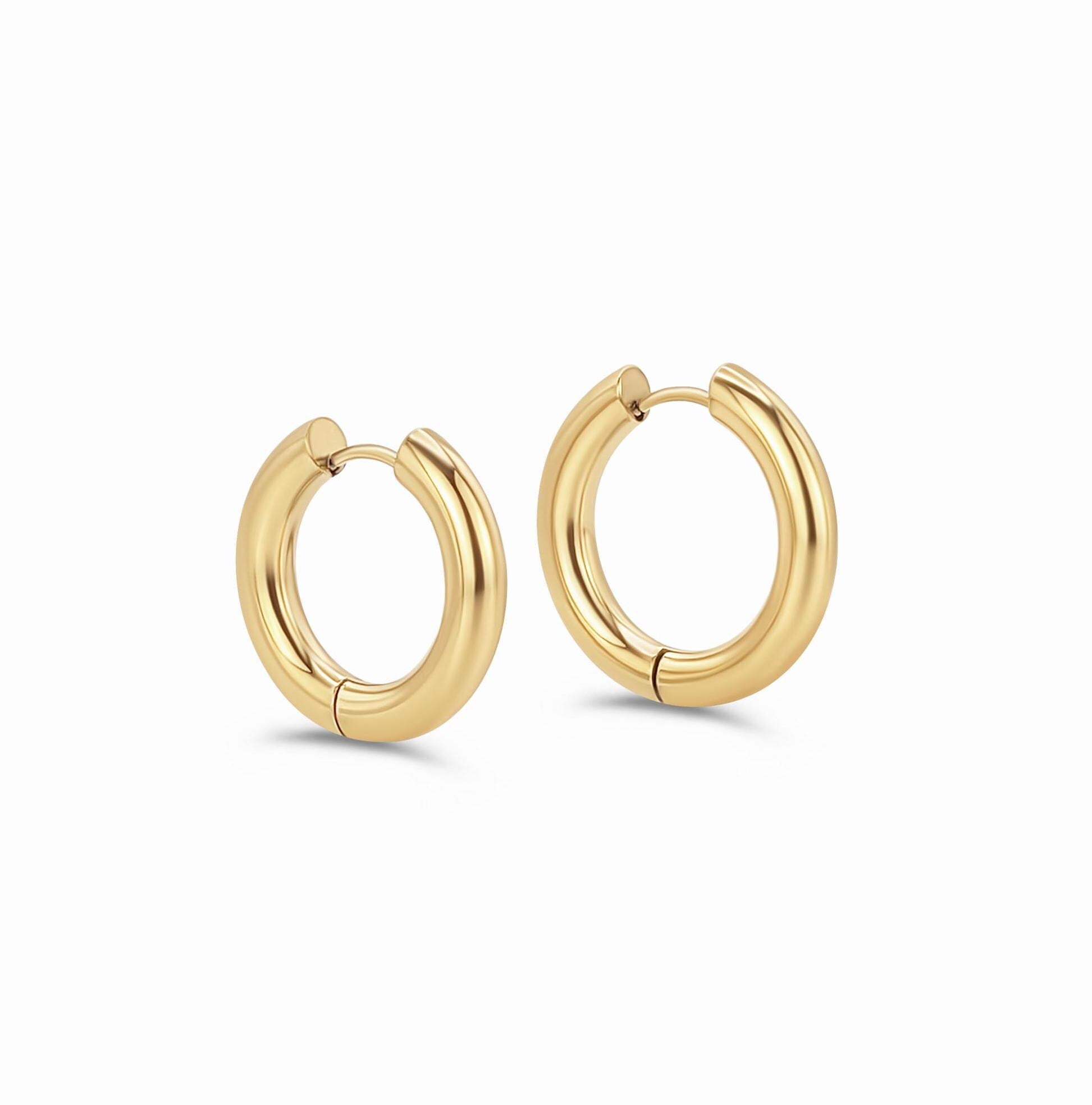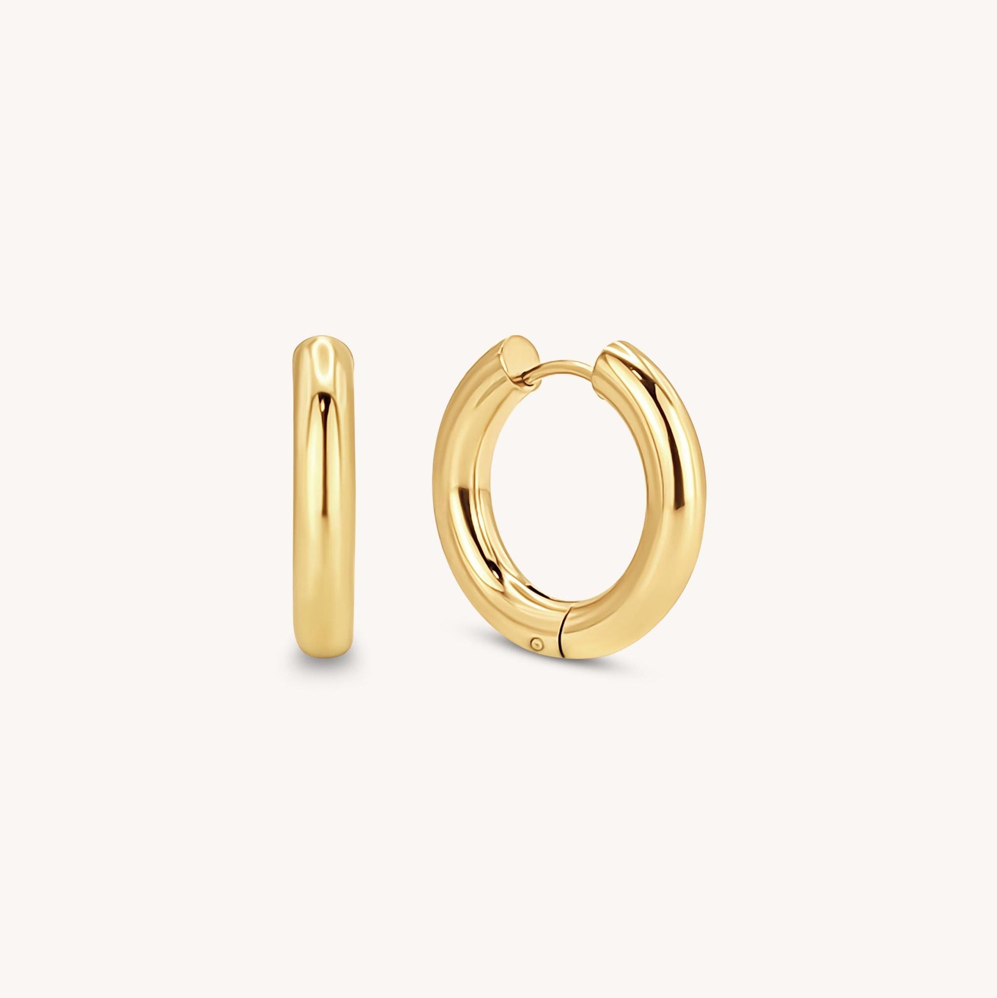Thick Hoop Huggie Earrings - 18k Gold Plated