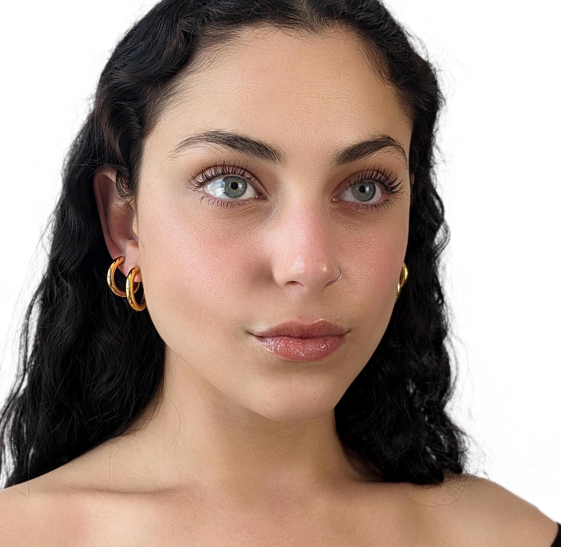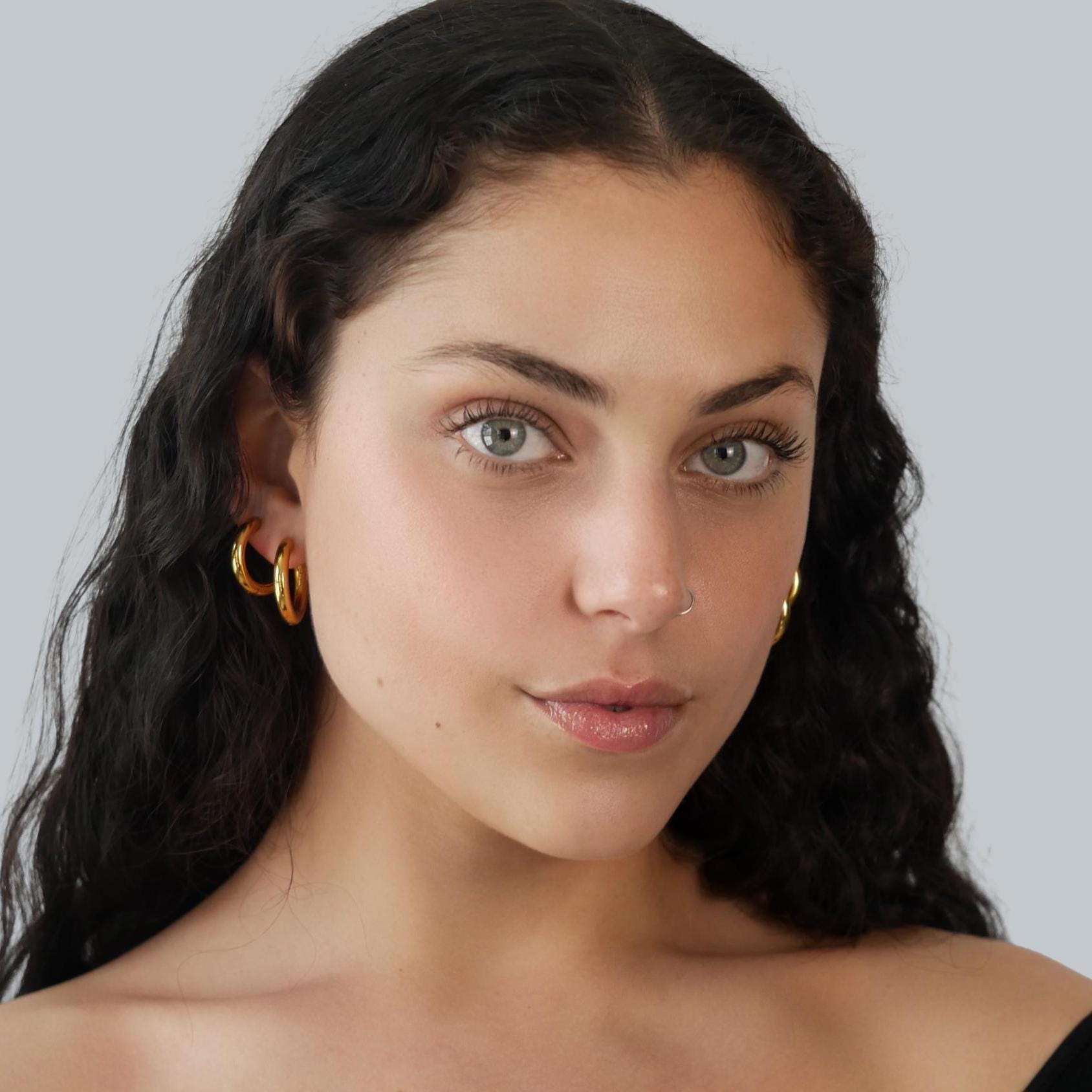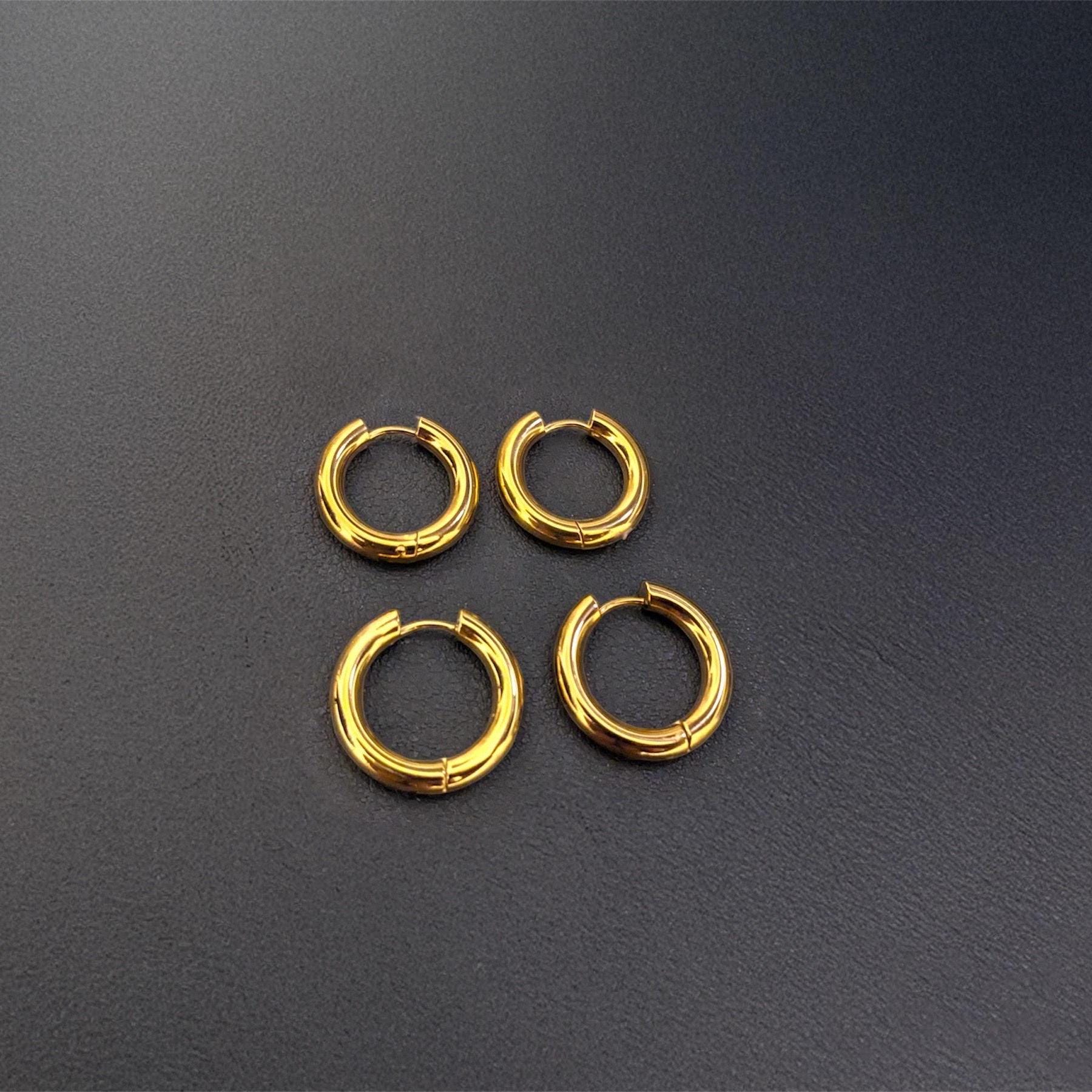 Thick Hoop Huggie Earrings - 18k Gold Plated