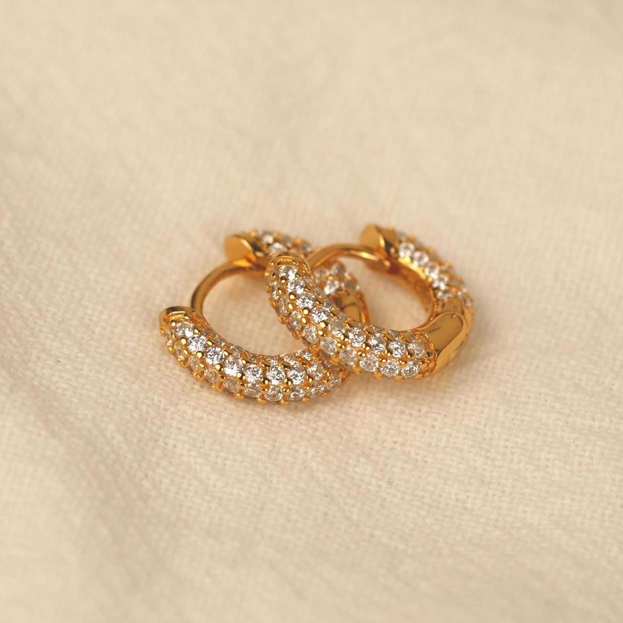 Pave Diamond Huggies - 18k Gold Vermeil, CZ