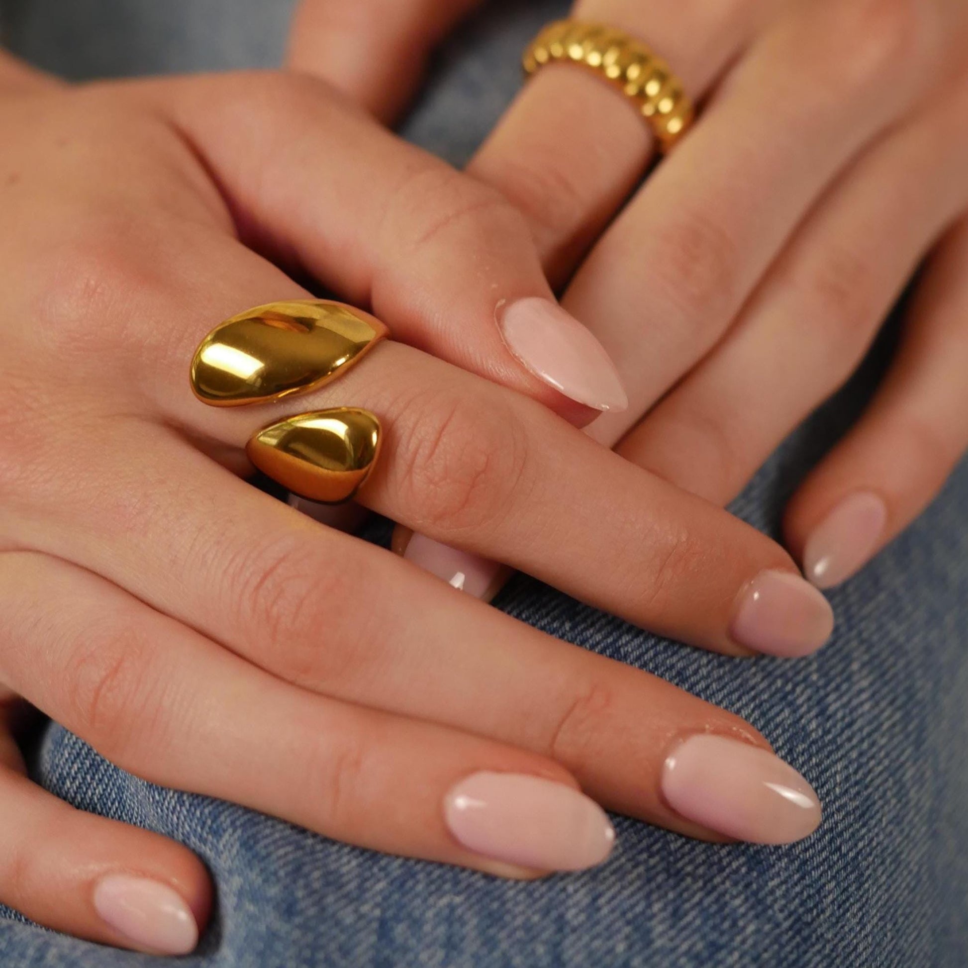 Open Cuff Statement Ring - 18k Gold, Stainless Steel