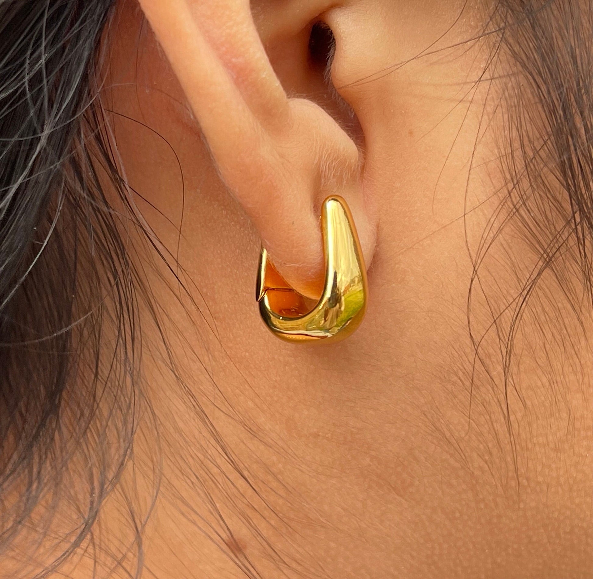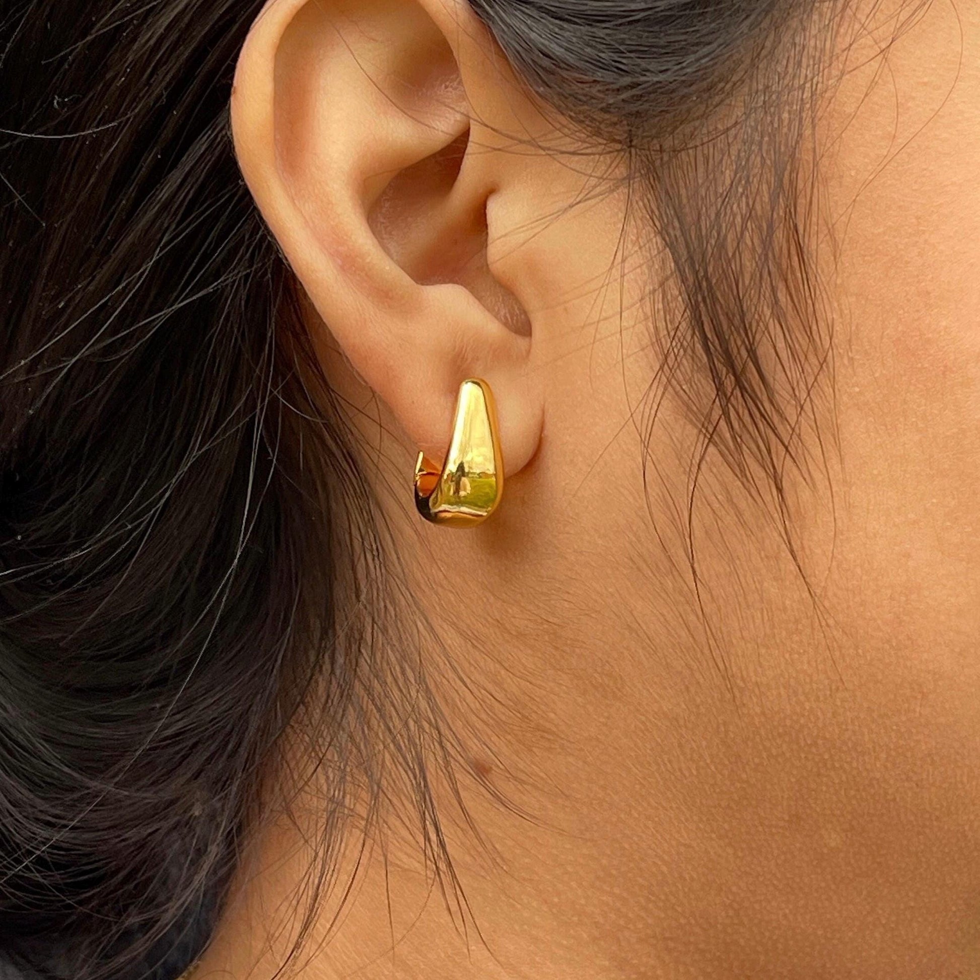Teardrop Dome Hoop Earrings - 18k Gold Plated