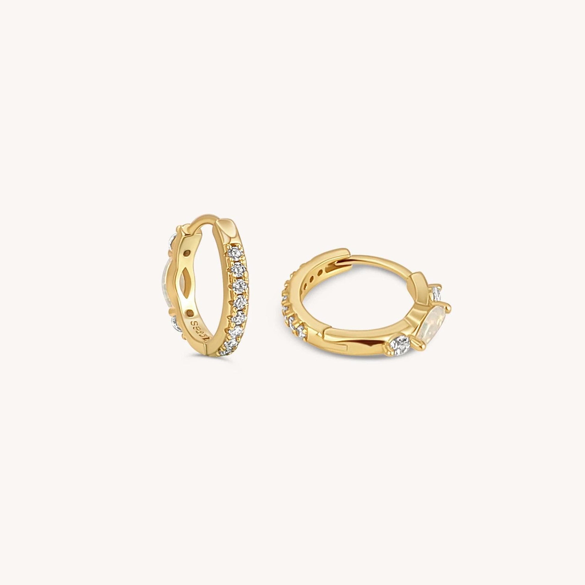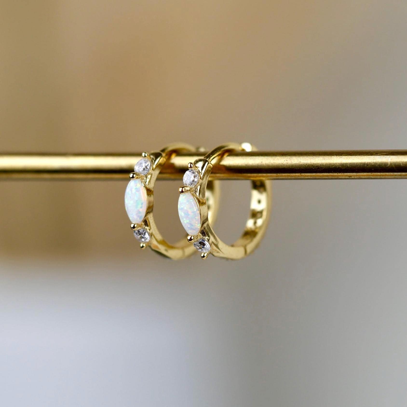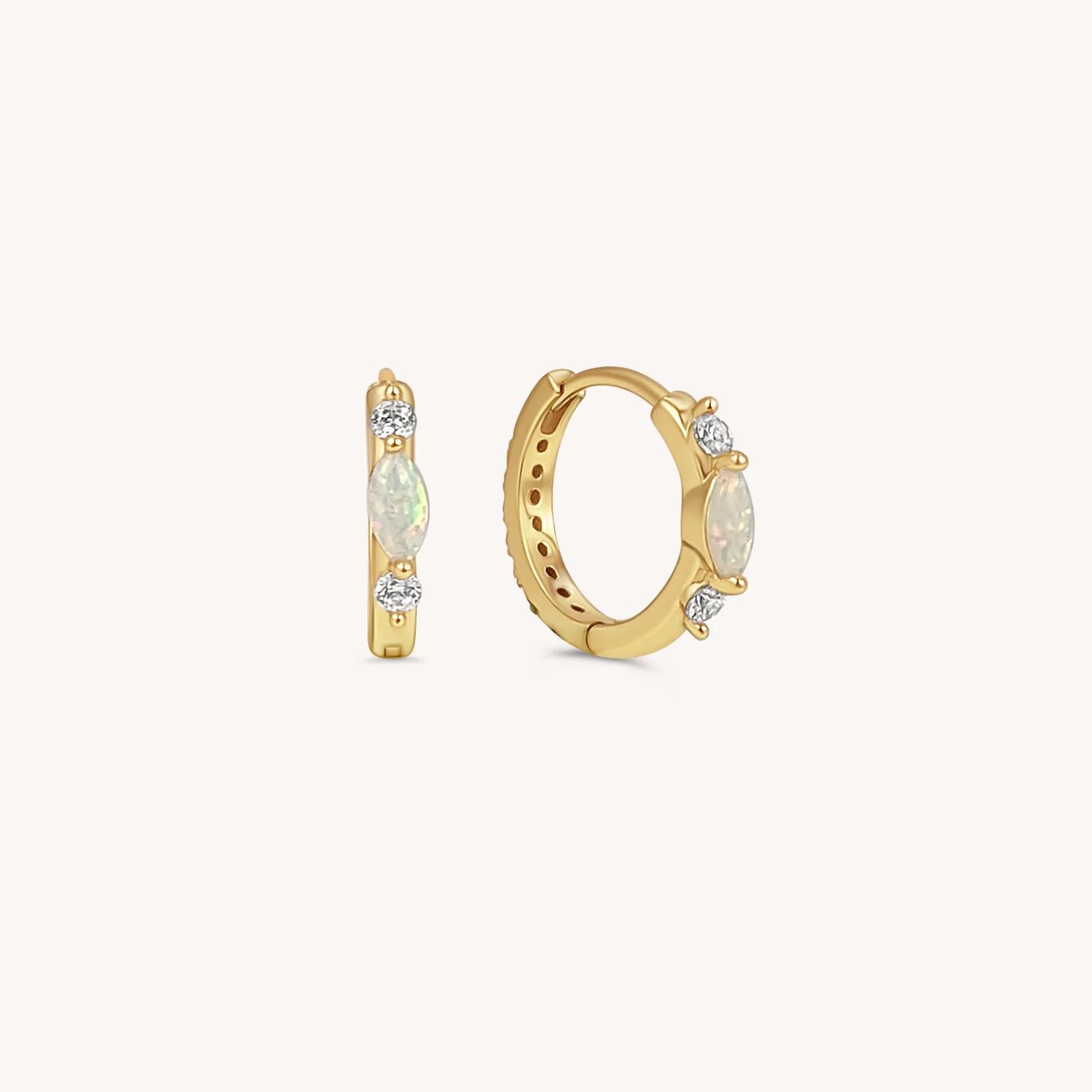White Opal Huggie Earrings - 14k Gold Vermeil